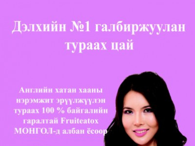 Сүүлийн үед охид бүсгүйчүүдийн талархалыг хүлээх болсон тураах цай Монголд орж иржээ. Тодруулбал, Английн хатан хааны нэрэмжит Эрүүлжүүлэн тураах 100 хувь байгалийн гаралтай Fruiteatox цай юм.
